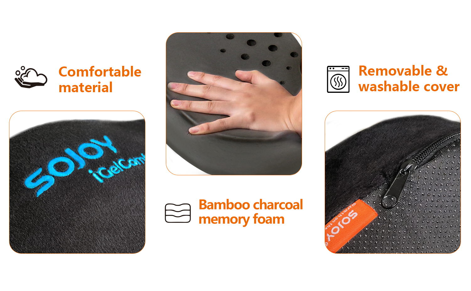- 【PREMIUM MATERIALS】Sojoy office seat cushion is made of the high density memory foam infused charcoal.It has holes to provide air ventilation and reduce temperature from rising.